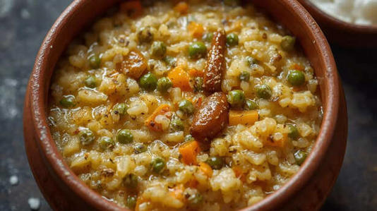 Oats khichdi is a healthy and wholesome breakfast choice. Roast cumin seeds, green chilies, and onions, then add vegetables. Mix oats with moong dal, add water, turmeric, salt, and mild spices, and cook until soft. This dish is rich in fiber and easy to digest.